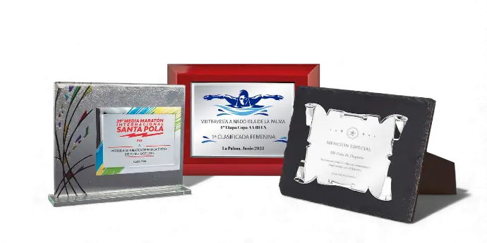 La categoría de Placas Homenaje está pensada para reconocer momentos y personas especiales con elegancia y personalización. Disponibles en materiales como plata de ley, aluminio o latón, y con soportes de madera, cristal o pizarra, estas placas pueden grabarse a láser o imprimirse a color, ofreciendo un acabado profesional y duradero que realza cualquier homenaje o reconocimiento.