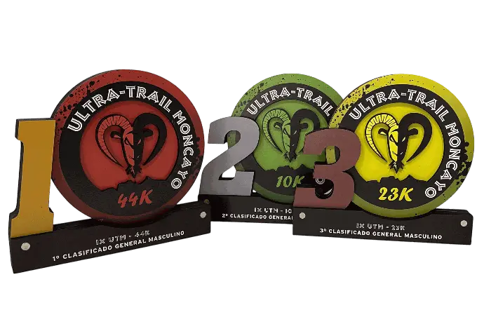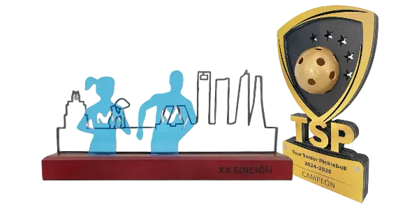 Una de las opciones más demandadas son los trofeos personalizados en madera. Si buscas que combine estilo, personalización y respeto por el medio ambiente, este tipo de trofeos es la elección perfecta. Fabricados con materiales sostenibles, son ideales para eventos que reflejan un firme compromiso con el cuidado del planeta. Su diseño es completamente adaptable, permitiéndonos crear siluetas personalizables y muy llamativas.